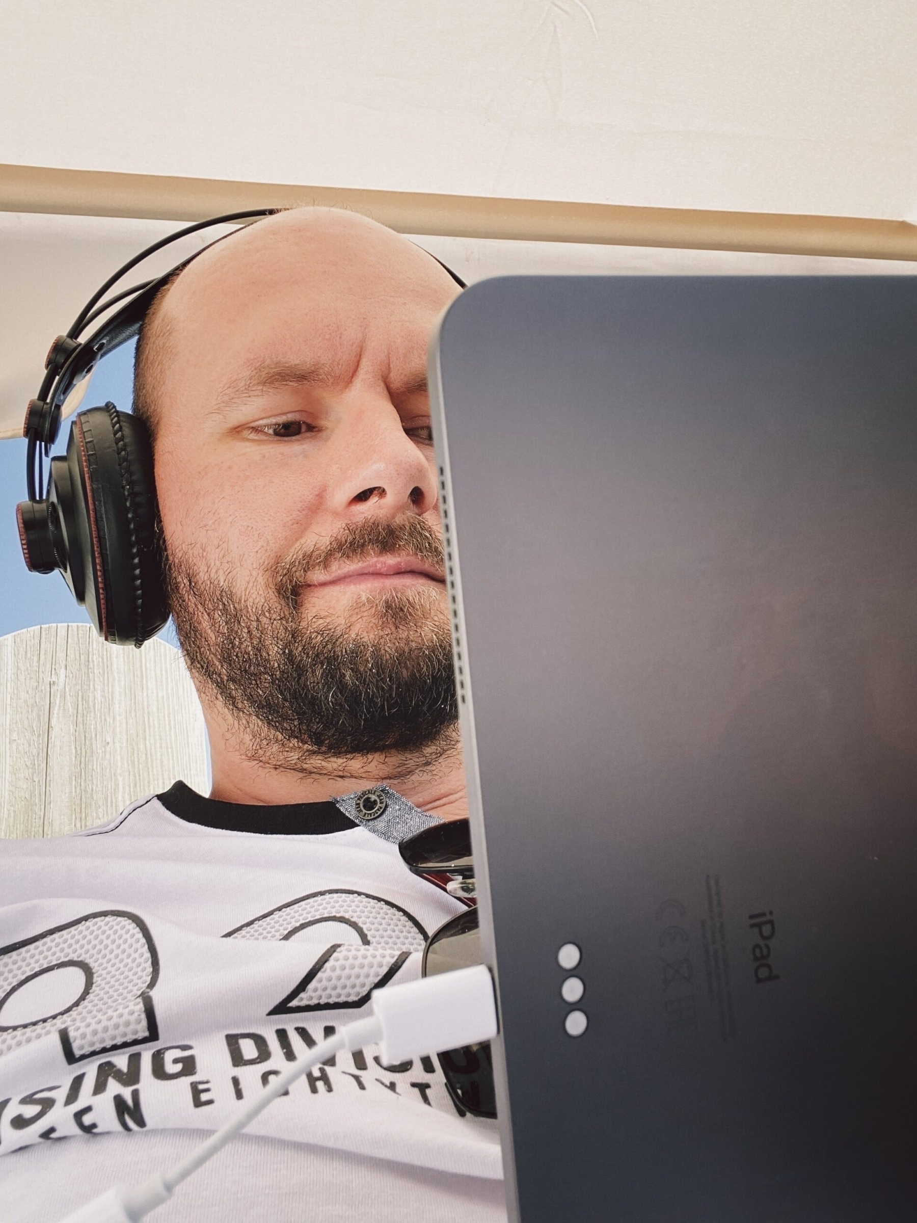 Auf der Terrasse bei Sonnenschein an neuen Tracks basteln. Wundervoll 😊