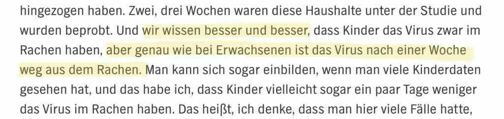 Der Leiter des Gesundheitsamtes hier im Kreis (der Kreis mit dem Spargelhof) wird sich die Corona-Warn-App nicht installieren, und sie auch nicht empfehlen, weil er nicht weiß, was das bringen soll. (Quelle: Interview in der Aichacher Zeitung vom 19.06.2020 - online leider nicht vollständig verfügbar) Sollte sich ein Gesundheitsamt nicht über jede Arbeitserleichterung freuen? Erleichtert die App nicht zumindest ein wenig das Contact Tracing? Ist nicht schon allein schon die Tatsache, dass ein Testergebnis direkt zeitnah über die App mitgeteilt werden kann, ein enormer Zeitvorteil? Gerade bei einem Virus, bei dem das serielle Intervall bei rund 4 Tagen liegt, und kürzer als die Inkubationszeit ist? Die App ist sicher nicht das Allheilmittel. Aber sie ist ein weiterer Baustein in der Bekämpfung der Pandemie. Warum sollte man auf den Baustein verzichten? Auch an der Zuverlässigkeit der PCR-Tests hat er in diesem Interview, und auch in vergangenen Artikeln zum Spargelhofausbruch immer wieder gezweifelt. Man kann die Tests sicher differenziert betrachten, aber diese allgemein geäußerten Zweifel senden ein falsches Signal an die Bevölkerung. Zusammen mit seiner Arbeitshypothese, dass die 96 positiv auf Sars-CoV-2 getesteten Personen gar nicht infektiös sind, und es sich um Erkrankungen aus der Vergangenheit handelt ((zur Erinnerung: Der PCR-Test ist nur in der ersten Woche zuverlässig positiv. Wurde auch wieder im aktuellen Coronavirus-Update (siehe auch den Screenshot) erwähnt. Bei bereits überstandenen Erkrankungen gibt es manchmal zufällig positive Ergebnisse. Aber dass von 525 Tests 96 positive Zufallsfunde aus Virenresten sind, halte ich für sehr unplausibel)), weiß ich nicht so recht, welches Vertrauen ich dem Gesundheitsamt hier im Moment entgegenbringen kann. Und in einer Pandemiesituation fühlt sich das gar nicht so toll an, irgendwie. Fußnoten: