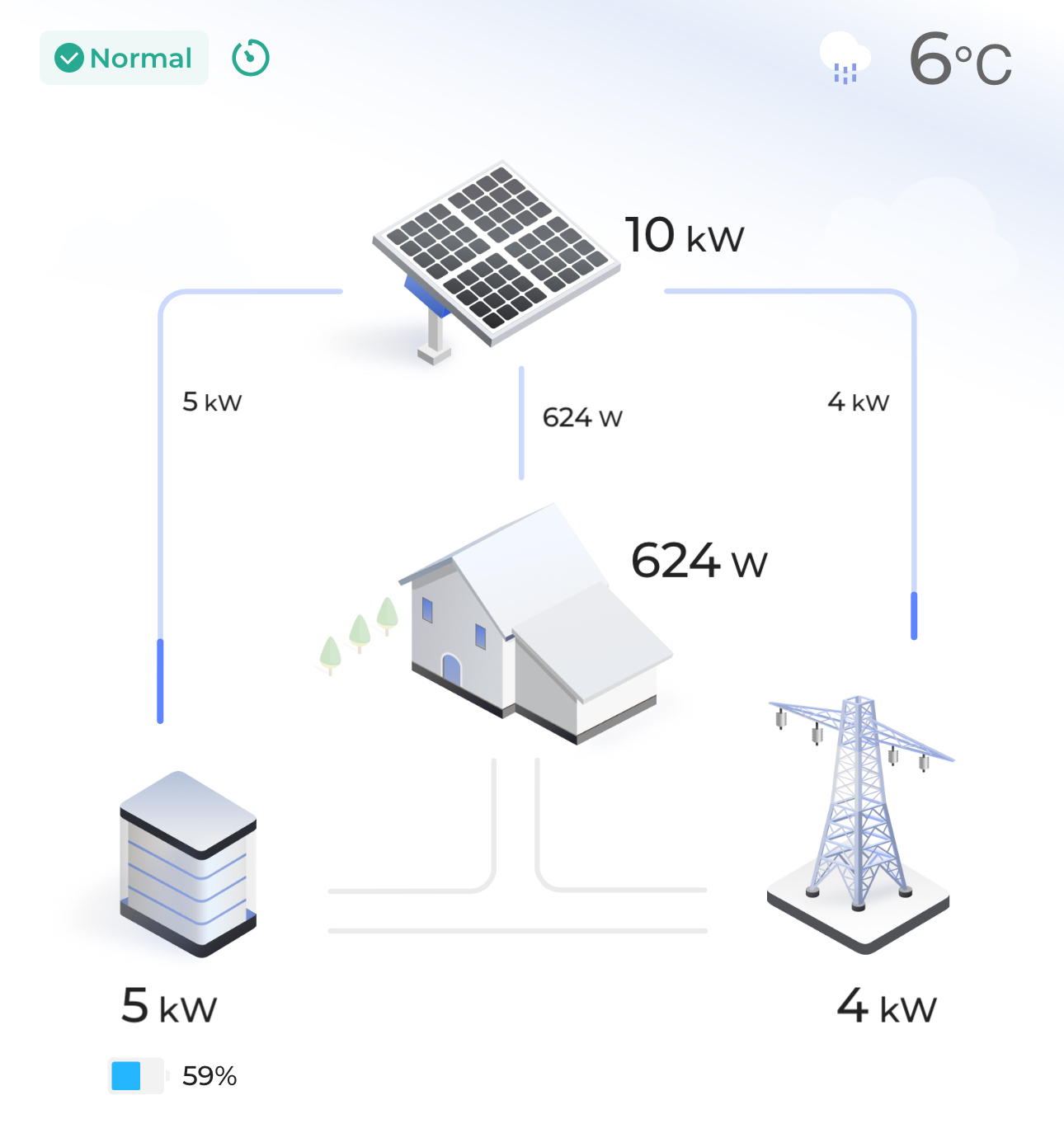 Natürlich starrt man in den ersten Tagen ganz gespannt auf die App und beobachtet, was sich so alles tut, und freut sich über jede kWh, die vom Dach kommt. Gut, die letzten Tage waren eher traurig, weil sich die Sonne kein bisschen zeigte und tagsüber nicht einmal die Grundlast des Hauses gedeckt war. Aber das muss ja nicht so weitergehen. Wenn die Sonne mal rauskommt, kommen volle 10 kW vom Dach und verteilen sich auf den Akku und die anderen Verbraucher, und idealerweise das Auto.