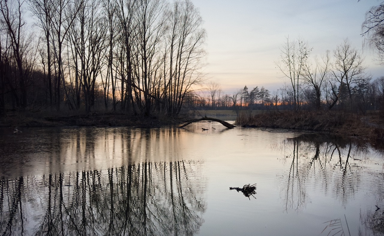 {.wp-image-3389 alt="Ein Foto von einem stillen See im Dämmerlicht, gesäumt von kahlen Bäumen, deren Silhouetten sich im ruhigen Wasser spiegeln. Der Himmel darüber ist wolkenverhangen und verleiht der Szene eine gedämpfte, fast monochrome Atmosphäre."}